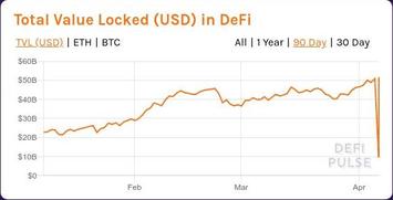 Казалось бы, 2 сильных сбоя подряд в течение короткого промежутка времени - это более чем достаточно, и третьего подобного сбоя в ближайшее время ждать не следует. Тем не менее, День Сурка повторился уже 8-9 апреля, причём в этот раз DefiPulse как-то сумел зафиксировать обвал TVL до нуля.
